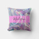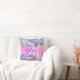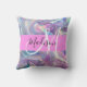 Nome e travesseiro decorativo inicial do monograma holográfico, iridescente, rosado, roxo e aqua. Seu nome personalizado e monograma são escritos em um elegante roteiro escrito à mão com um fundo rosa. Um aniversário perfeito ou presente de Natal!