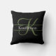 Almofada Nome do Monograma Script Inicial Preto Verde
