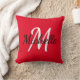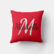 Travesseiro decorativo com um fundo vermelho vivo moderno e um monograma personalizado branco mínimo, primeiro nome e primeiro nome.