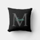 Almofada Nome do Script Teal, Monograma de Cinza Grande em