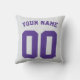 Travesseiro decorativo personalizável de vovô de hóquei número 1. Adicione sua escolha de nome e número às costas, no estilo de camisa do jogador de hóquei. 2 cores vintage parecem design em cores douradas e roxas contrastantes. Com bastões de hóquei cruzados e punhos de hóquei, e o texto EAT SLEEP PLAY HOCKEY.