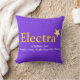 Um fundo roxo gráfico em negrito com estrelas gráficas e nome personalizado que escreve texto e nome significando travesseiro colorido de almofada de impressão. Atualmente lê Electra Uma estrela brilhante. Dinâmico, quente e brilhando com vibração, ou este item pode ser personalizado com seu próprio nome e nome abreviados ou o que seu nome significa para você. Padrão original e nome que significa pesquisa e design por Sarah Trett para www.mylittleeden.com