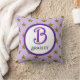 Este travesseiro de monograma é uma forma excelente de criar uma lembrança memorável para alguém especial. Um padrão de estrela dourada aparece contra um fundo roxo. A letra B em roxo brilhante é apresentada num círculo central junto com o nome da família. Personalize facilmente as cores e o nome da família para se adequar ao seu desejo. A letra "B" não pode ser personalizada neste travesseiro. Se você está procurando uma carta diferente, visite nossa loja. Design original - C. McGouldrick