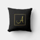 Inicial na moda do nome do roteiro da mão um quadrado Dourado preto 16" do modelo do monograma x 16" travesseiro decorativo.