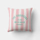 O travesseiro decorativo personalizado perfeito para sua casa de praia... Listras cor-de-rosa com o logotipo da casa de praia da família especial Miami. Personalize com os detalhes da sua casa de praia... nome familiar, ano estabelecido e local. A adição perfeita à sua casa de praia, sala de jardim, poolside ou para trazer um pouco de conforto à praia! Acessórios correspondentes disponíveis na Family Beach House Pink Cabana Stripe Collection.