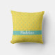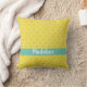 Travesseiro decorativo de bolinhas amarela e azul-aqua com nome personalizável!