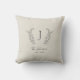 Travesseiro decorativo elegante preto-e-branco de louros botânicos clássicos do monograma da família personalizada. +++++ Uma decoração moderna ou um presente de manutenção para casamentos, recém-casados, aniversários, refeitórios, casa nova, Ação de Graças, Natal ou qualquer outra ocasião.