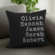 Travesseiro decorativo Personalizado da Família de Máquina de Escritura. Crie seu próprio travesseiro decorativo personalizado com nomes familiares de crianças, pais e animais de estimação em tipografia de estilo antigo. Excelente presente de Natal para avós.