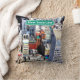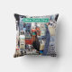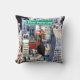 Travesseiro com uma fotografia colorida da arquitetura artística da cidade, o típico cartaz verde e branco da cidade e o texto personalizável "Nova Iorque".