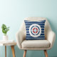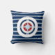 Náuticos elegantes e na moda do azul marinho e o brancos, a praia ou o travesseiro decorativo litoral da decoração com as listras dos azuis marinhos e do branco e o rosa de compasso em um lado com um acento vermelho e umas listras do azul marinho e as brancas modelam o fundo no outro lado. Estas cores comtemporary limpas frescas e o design aumentarão toda a casa, casa de praia, sala de estar, sofá, quarto, escritório ou barco.