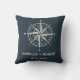 Crie um bom aspecto com o nosso travesseiro náutico de música com uma ilustração de bússola desenhada à mão, em azul marinho. Personalize com uma data de casamento ou aniversário para um presente perfeito para recém-casados ou seu casal favorito. Projetado para corresponder aos nossos convites e acessórios do casamento The Blue Compass