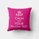 O costume mantem a calma e o seu travesseiro decorativo da sala do dormitório do texto. O dobro tomou partido design das cores customizáveis. Rosa preto e branco ou do néon. As decorações bonitos para estudantes colocam, sofá ou cadeira. Faça seu próprio engraçado manter a calma e continuar o design da paródia. Modelo customizável da tipografia do vintage com coroa. Cor do fundo de Personalizable. Criar seu próprio coxim cómico da decoração da paródia. Exemplos da paródia de Keepcalm: Mantenha a calma e o partido sobre. Mantenha a calma e ame-me. Mantenha a calma e estude-a sobre.