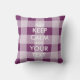 O costume mantem a calma e o seu travesseiro decorativo do texto com teste padrão checkered do guingão da ameixa. Decoração home bonito para o quarto ou o sofá. Faça seu próprio engraçado manter a calma e continuar o design da paródia. Modelo customizável da tipografia do vintage com coroa. Impressão Cosy da decoração com cor personalizable do fundo. Criar sua própria versão cómico editando este modelo tomado partido dobro na moda. Exemplos da paródia de Keepcalm: Mantenha a calma e o partido sobre. Mantenha a calma e ame-me. Mantenha a calma e case-se.