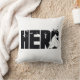 Tipografia gráfica da palavra "Herói", com o esboço de Batman no final com um enxame de morcegos.
