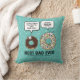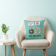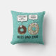 Um travesseiro divertido para o pai das crianças! Apresentando um fundo teal com decoração branca de aspersão, duas rosquinhas bonitas de desenho animado, bolhas de fala com texto humorístico que pode ser personalizado, o texto 'MELHOR PAI NUNCA' e os nomes das crianças.