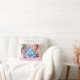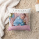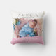 A moderna e moderna almofada de manutenção. Design da fotografia do bebê e do pincel em cor branca e rosa e nome do bebê, data de nascimento, peso, comprimento, tempo de nascimento, etc., escritos em caracteres modernos, a preto e branco. Por favor, não hesite em contactar-me se precisar de ajuda com este design.
