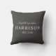 Personalize esta obscuridade profunda clássica moderna e na moda - as cinzas personalizadas descansam com seus próprios nomes mão na moda no roteiro rotulado, seu sobrenome/nome de família, e o ano onde sua família foi estabelecida no texto branco. As cores da pia batismal e do fundo podem ser mudadas clicando "clicam aqui para personalizar mais" "personalizam na caixa de diálogo deste modelo". Este é o travesseiro perfeito para o newlywed ou como um presente de casamento. Contacte-me por favor se você gostaria de uma personalização mais adicional com seus travesseiros!