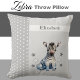 Travesseiro decorativo/almofada de lado duplo para o quarto/berçário/sala de reprodução de uma criança. Esta cinza e travesseiro branca tem bolinhas, estrelas e uma zebra fofa, que você pode personalizar com um nome.