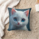 Almofada O sorriso de um gato branco com olhos azuis