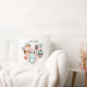 O travesseiro decorativo apresenta uma ilustração fofinha de animais florestais divertidos contra um fundo cardíaco cor-de-rosa macio.