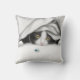 Design original das belas artes de um gatinho curioso do smoking que desengaça um inseto pelo artista Carolyn McFann do estúdio de ronrom de dois gatos impresso em um travesseiro de Mojo do americano da qualidade para amantes do gato.