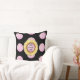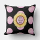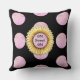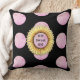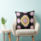 Pintura de girassol e bolinhas rosa em fundo preto Almofada de Arremesso. O texto pode ser excluído ou personalizado.