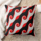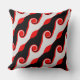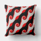 Belo travesseiro decorativo com ondas abstrato de moda em cores vermelha, preta e prateada. A vida acontece em ondas!