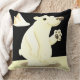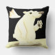 Travesseiro decorativo divertido com o Polo Norte de um lado, com um urso polar, e o Polo Sul do outro, com um pinguim. Ilustrações ©2019 Michael C. Paul https://mikepaulart.com