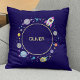 Este travesseiro decorativo lúdico apresenta um centro personalizável para um nome, rodeado por uma nave de foguetes divertida em órbita. Estrelas cintilantes, planetas vibrantes e cometas brilhantes completam esta design.