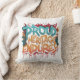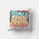 Um travesseiros vibrante e surpreendente com a frase "O Patrimônio Orgulhoso Encontra-se" em letras-bloco multicoloridas, organizadas em um padrão circular, criando um design visualmente impressionante e memorável.