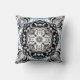 Artistic mandala pillow in delft blue and black. Fine linework and ornamental detail bring bold, stylish character.