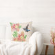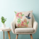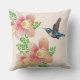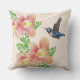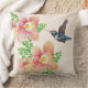 Lindas flores cor-de-rosa e beija-flor azul-turquesa no Travesseiro decorativo de marfim.