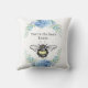 Belo travesseiro quadrado inspiracional de 16"x16", com um bonito abelha e híbridos azuis. Apresentado aqui em algodão - outros tecidos e tamanhos disponíveis!