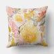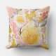 Travesseiro floral com ouro impressionante Banksia floresce com folhagem de cinza e flores cor-de-rosa em um design que equilibra tons de terra com realces florais sutis.