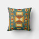 Travesseiro decorativo quadrado com o padrão dos raios solares do Ouro do Sudoeste pelo TheFabricSeal com cor laranja ensolarada de ouro, vermelho-indiano, creme de ouro, azul-turquesa e verde mais tons castanhos de tons de terra. Este design é um dos três trabalhos de arte principais da série de designs de padrão de tapetes, mantas e tapetes do sudoeste da Índia. Há também muitas versões de padrões abstrato desses designs no compro perfeito para misturar e combinar designs e produtos.