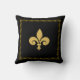 Ouro Fleur de Lis com Quadro Floral no Travesseiro decorativo Preto. Fleur de Lis significa realeza, virtude e harmonia.
