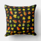 Lindo, elegante ouro moderno, folhas verdes, cor de laranja no Travesseiro decorativo preto.
