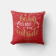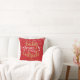 Almofada personalizada de Natal com a frase "Bebê está frio lá fora", em um texto elegante em ouro e branco sobre um fundo vermelho com flocos de neve caindo. O verso apresenta uma lebre em uma cena de inverno com fundo de floresta com a palavra amor em uma bela fonte de ouro. Você pode personalizar com o nome de um ente querido e o ano. Um presente perfeito de Natal!