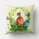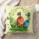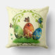 travesseiro decorativo amarelo macio de 20" x 20" com uma imagem, em ambos os lados, de um ovo verde, laranja e azul de Páscoa sentado sobre a grama verde, tudo com bordas douradas e decorado com cipós amarelas. Os ovos estão numa armação de vinha verde, pintada com dois coelhos verdes da Páscoa e há várias borboletas bonitas aqui e ali. Consulte travesseiro decorativo redondo de 16" e travesseiro de destaque de 12" x 16". Consulte toda a coleção de Travesseiros de Páscoas na categoria HOME na seção HOLIDAYS.
