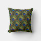 Almofada Padrão Clássico de Pena de Pavão em Tons de Joia