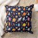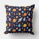 Padrão vibrante e contínuo mostrando foguetes, planetas e estrelas contra um fundo escuro do espaço. Perfeito para designs educacionais, decorativos ou infantis relacionados ao universo e ao espaço sideral.