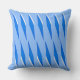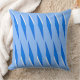 Esse trabalho de arte incorpora padrões azul-Crayola e branco que criam uma interação distinta contra um fundo azul-bebê macio, resultando em um delicado travesseiro decorativo geométrico.