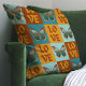 Coloque sua cabeça neste padrão de amor da borboleta | Travesseiro decorativo de gradiente azul e laranja. Um belo padrão geométrico de quadrados de borboletas alternando com a palavra: Amor. Uma ideia de presente de excelente para amantes de borboletas.