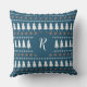 Almofada Padrão de Árvore de Natal Moderno Monograma Azul