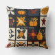 Este travesseiro decorativo apresenta um padrão de retalhamento inspirado em manta organizado em uma grade de quadrados escuros e claros. Cada bloco destaca motivos exclusivos, desde abóboras miniatura, folhas de outono e aves até picadas geométricas como estrelas, pinrodas e designs de pranchas. Renderizado em tons quentes de queda de laranja, vermelho, amarelo e marrom contra creme contrastante e fundo azul escuro, ele captura o encanto arecedor da coloração feita à mão. Perfeito para a decoração de fazendas rústicas, artesanatos de colheita e entusiastas primitivos de arte popular que amam o estilo do outono.
