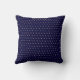 travesseiro decorativo de padrões de bolinhas texturizados azul e rosa dourado do marinho. O design apresenta um padrão de rosa dourado texturizado em um fundo azul marinho.