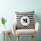 Almofada Padrão De Cevon Branco E Preto Do Monograma Modern