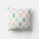 Design abstrato do padrão Chevron em verde-verde-verde-verde-menta, amarelo-ouro e pêssego. Este padrão colorido é repetido em ambos os lados do travesseiro.