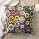 Um travesseiro com tema circular colorido com uma vibração retroativa. Cheio de pontos de rabisco e círculos padronizados. Mulitcolor.