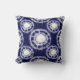 Shibori é a técnica japonesa para morrer de gravata. Este travesseiro decorativo na moda apresenta discos brancos ou círculos em um fundo azul marinho